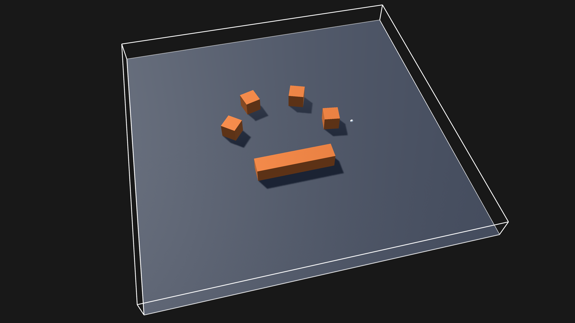 Then create some cubes of different scales and place them on the plane; these will be obstacles which the agent should avoid.