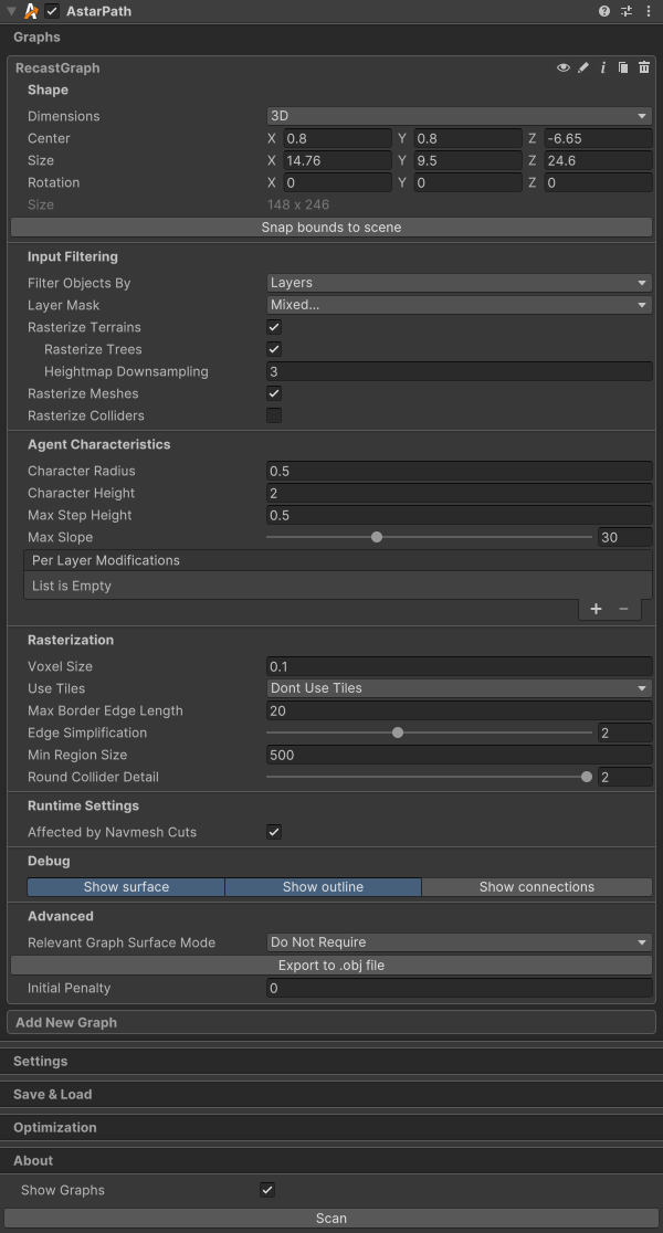 Moving every single node in the graph every frame would be slow, and propagating this information to already calculated paths would also be pretty tricky. So instead, the movement script that we use here ( LocalSpaceRichAI) cheats.