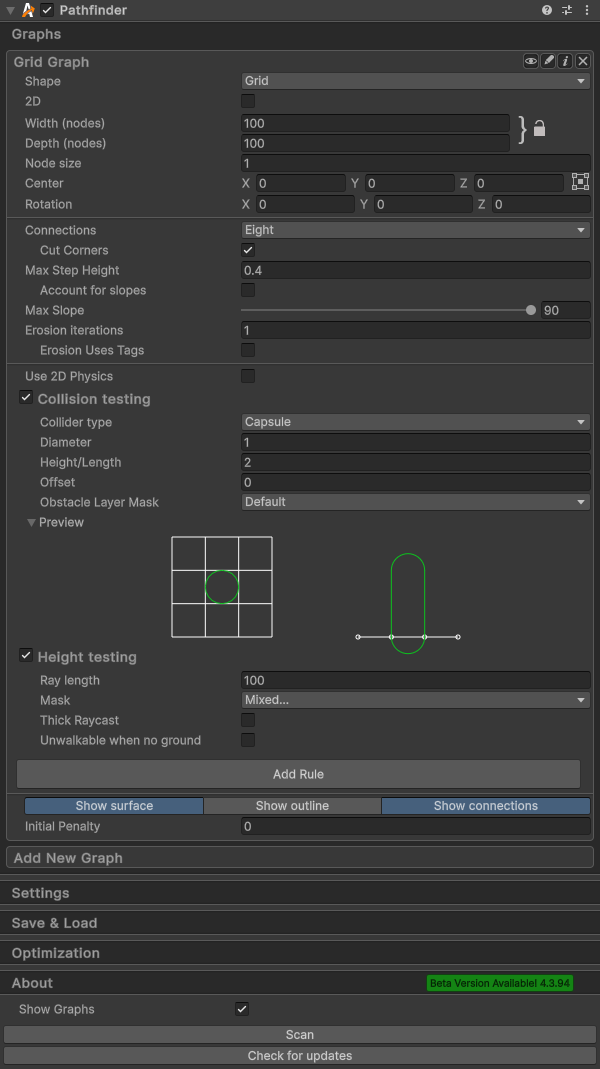 This example scene uses a grid graph for illustration purposes. Any other graph type could have been used, but grid graphs are usually the easiest to understand and reason about when it comes to the path visualizations.