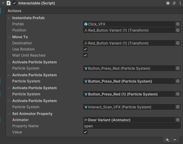 The Interactable component is a very simple state machine implementation which is intended for the example scenes. In a real game, you would probably want to use a more advanced state machine implementation, but this script can serve as a good example if you want to write your own state machine code for your game.