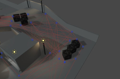 The PointGraph is the simplest of all graph types, but allows for a lot of customization, it consists of a bunch of user placed points which are linked together. A point graph is scanned by taking a root Transform, and treating every child of it as a node. It then checks the connections between the nodes using raycasts to see if they should be linked together.