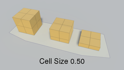 The cell size is the width and depth of those boxes. The height of the boxes is usually much smaller and automatically calculated, however.