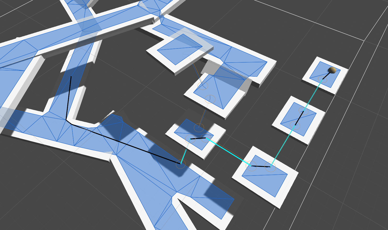 using UnityEngine; In the image you can see the output from the code example above. The cyan lines represent off-mesh links.