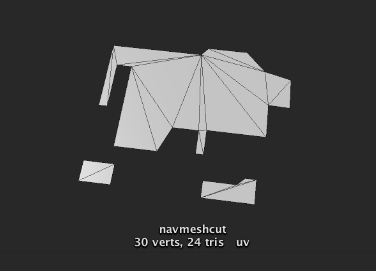 It is also possible to set the navmesh cut to dual mode by setting the isDual field to true. This will prevent it from cutting a hole in the navmesh and it will instead just split the navmesh along the border but keep both the interior and the exterior. This can be useful if you for example want to change the penalty of some region which does not neatly line up with the navmesh triangles. It is often combined with the GraphUpdateScene component (however note that the GraphUpdateScene component will not automatically reapply the penalty if the graph is updated again).