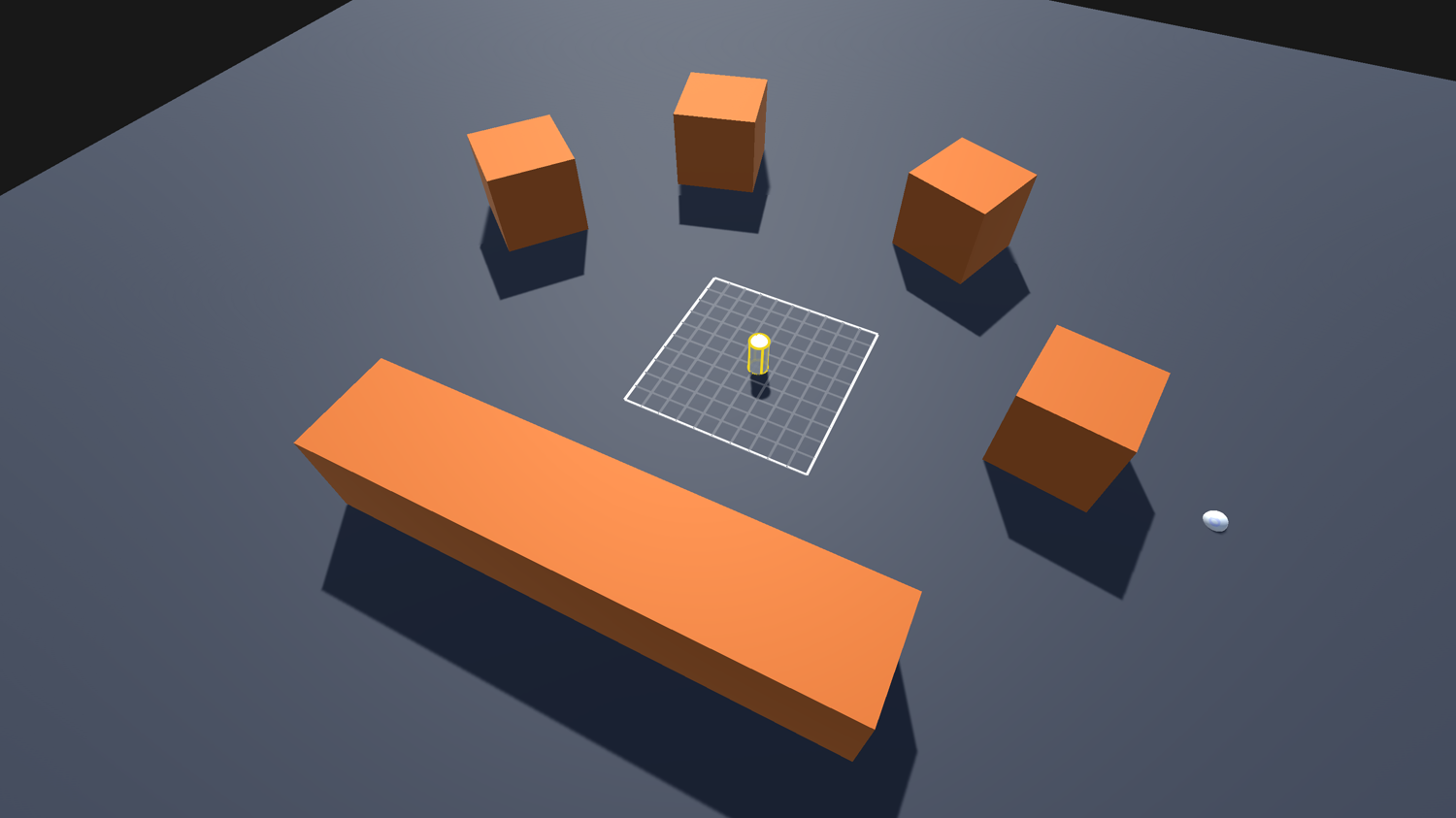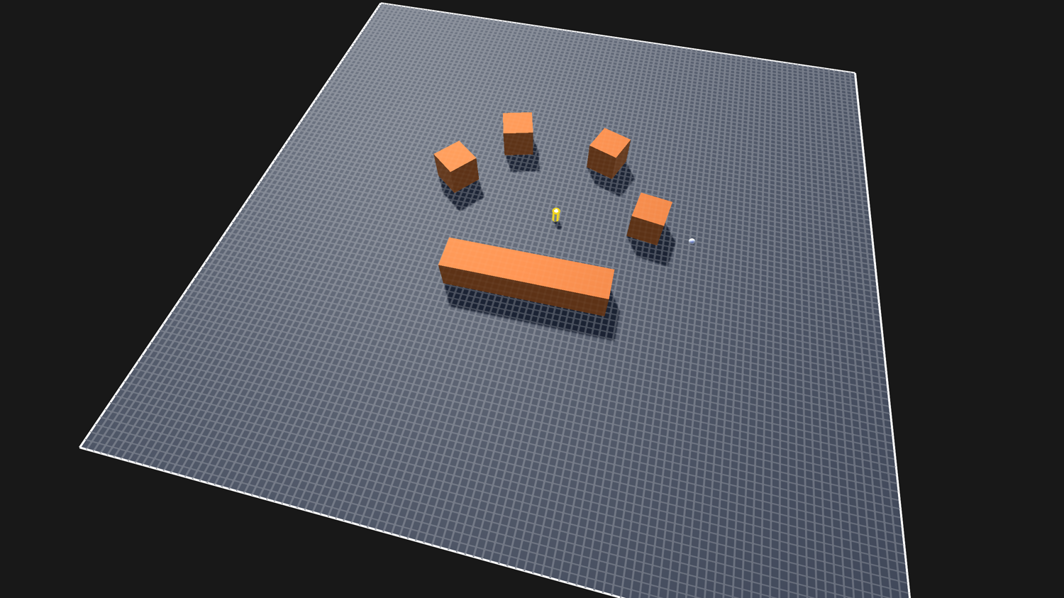 Then create some cubes of different scales and place them on the plane; these will be obstacles which the agent should avoid.