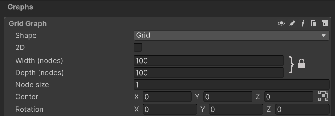 In contrast to e.g. the navmesh and recast graphs, which define the walkable areas by where their triangles are, nodes exist over the whole grid graph, but each node can be either walkable or unwalkable.