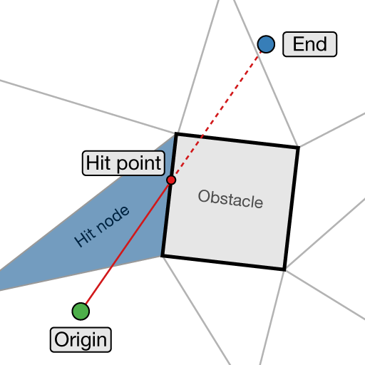 Raycasting and linecasting are common in games to detect obstacles in the world. Often one will query the colliders in the scene, using for example Unity's Physics class. However, when using this package, it is also possible to query the navmesh for obstacles.
