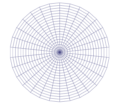 // The nodes here will always have exactly four connections, like a grid, but polar.