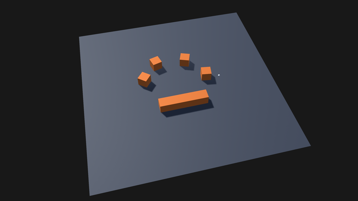 Then create some cubes of different scales and place them on the plane; these will be obstacles which the agent should avoid.