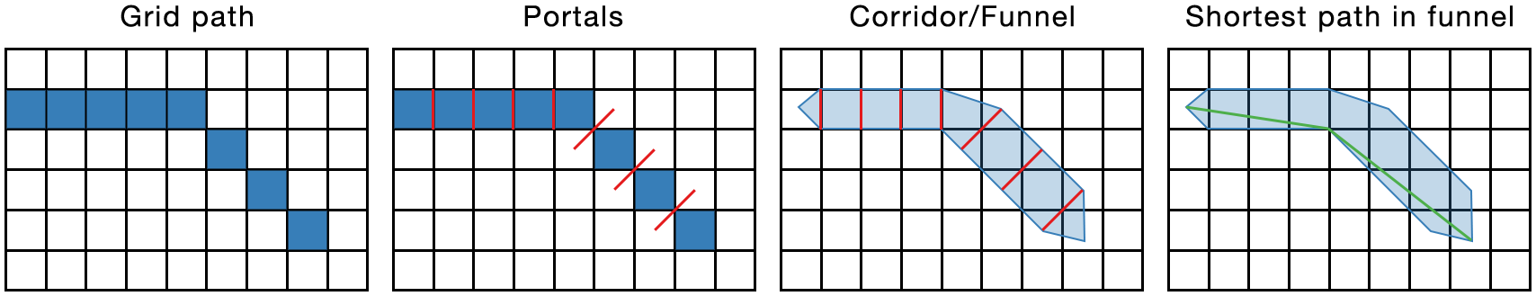 Simplifies paths on navmesh graphs using the funnel algorithm.