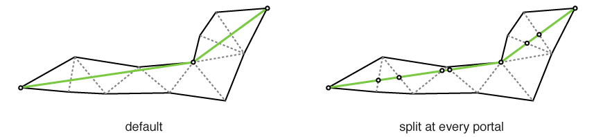 The resulting path will have exactly one vertex per portal if this is enabled. This may introduce vertices with the same position in the output (esp. in corners where many portals meet).