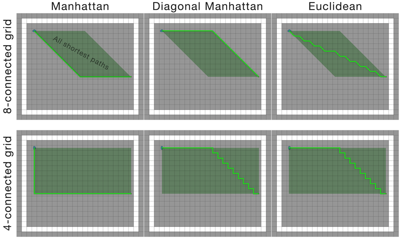 A path which searches from one point to a number of different targets in one search or from a number of different start points to a single target.