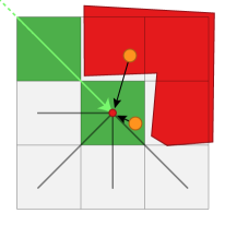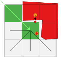 Do a straight line check from the node's center to the point determined by the Exactness.