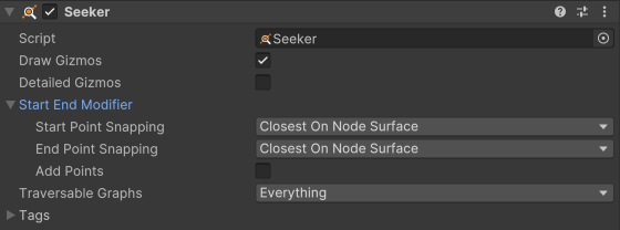 This modifier is included in the Seeker component and is always used if you are using a Seeker. When a path is calculated the resulting path will only be the positions of the nodes it passes through. However often you may not want to navigate to the center of a specific node but instead to a point on the surface of a node. This modifier will adjust the endpoints of the path.